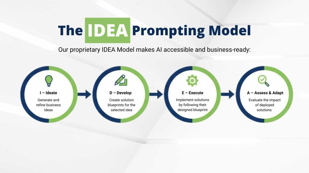 Apply the proprietary IDEA Prompting Model to design, execute, and refine AI solutions that deliver consistent results.